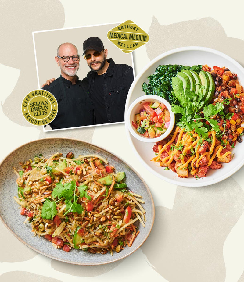 You can now enjoy select dishes from the Café Gratitude x Medical Medium collaboration delivered right to your door in several West Coast cities! Crafted around Medical Medium Anthony William’s transformative insights into the untapped power of food, these delicious and popular dishes are low-sodium and free of gluten, nuts, soy and oil– without compromising on flavor.